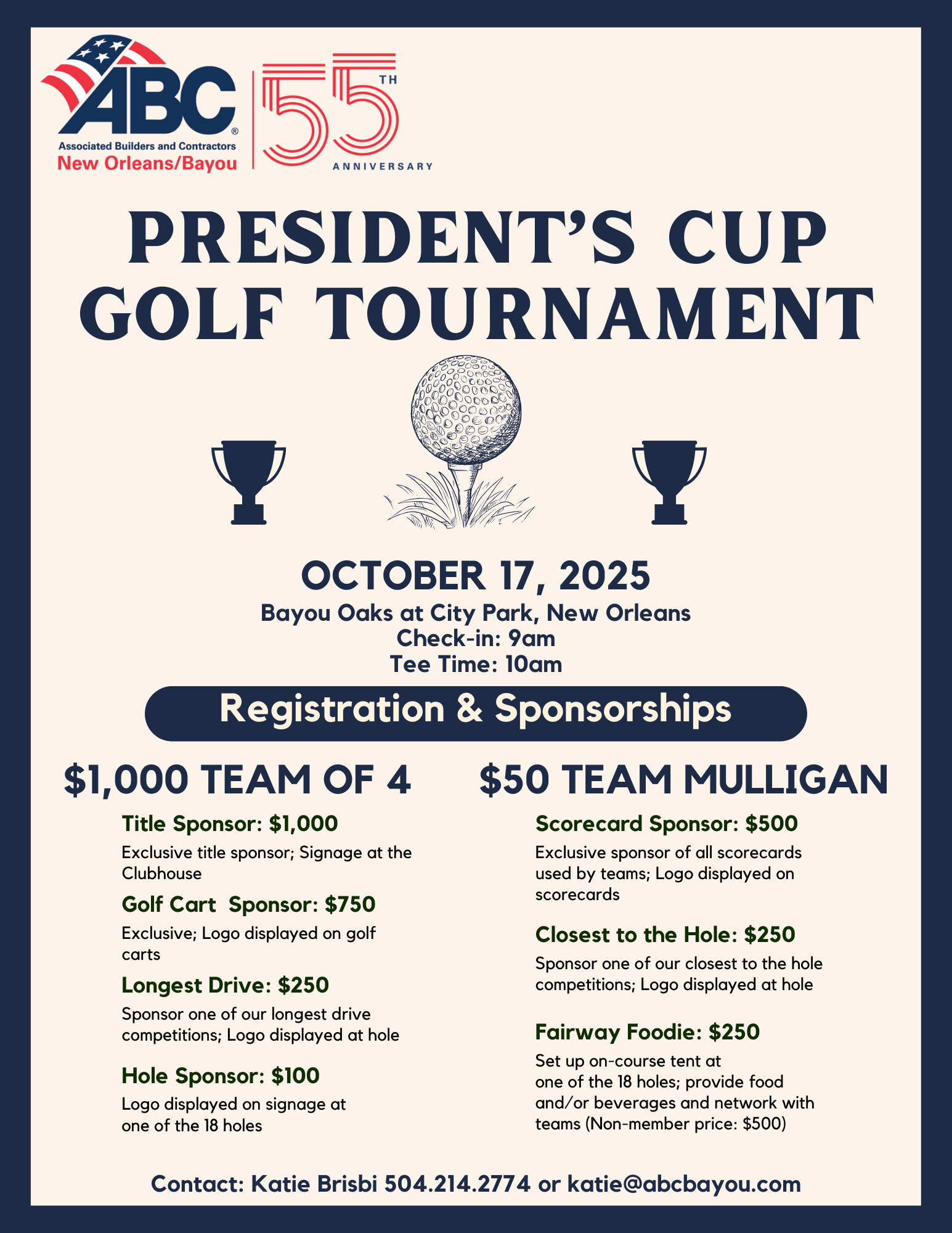 Join us for our annual fall golf tournament! There will be food, drinks, door prizes, putting contest and networking!